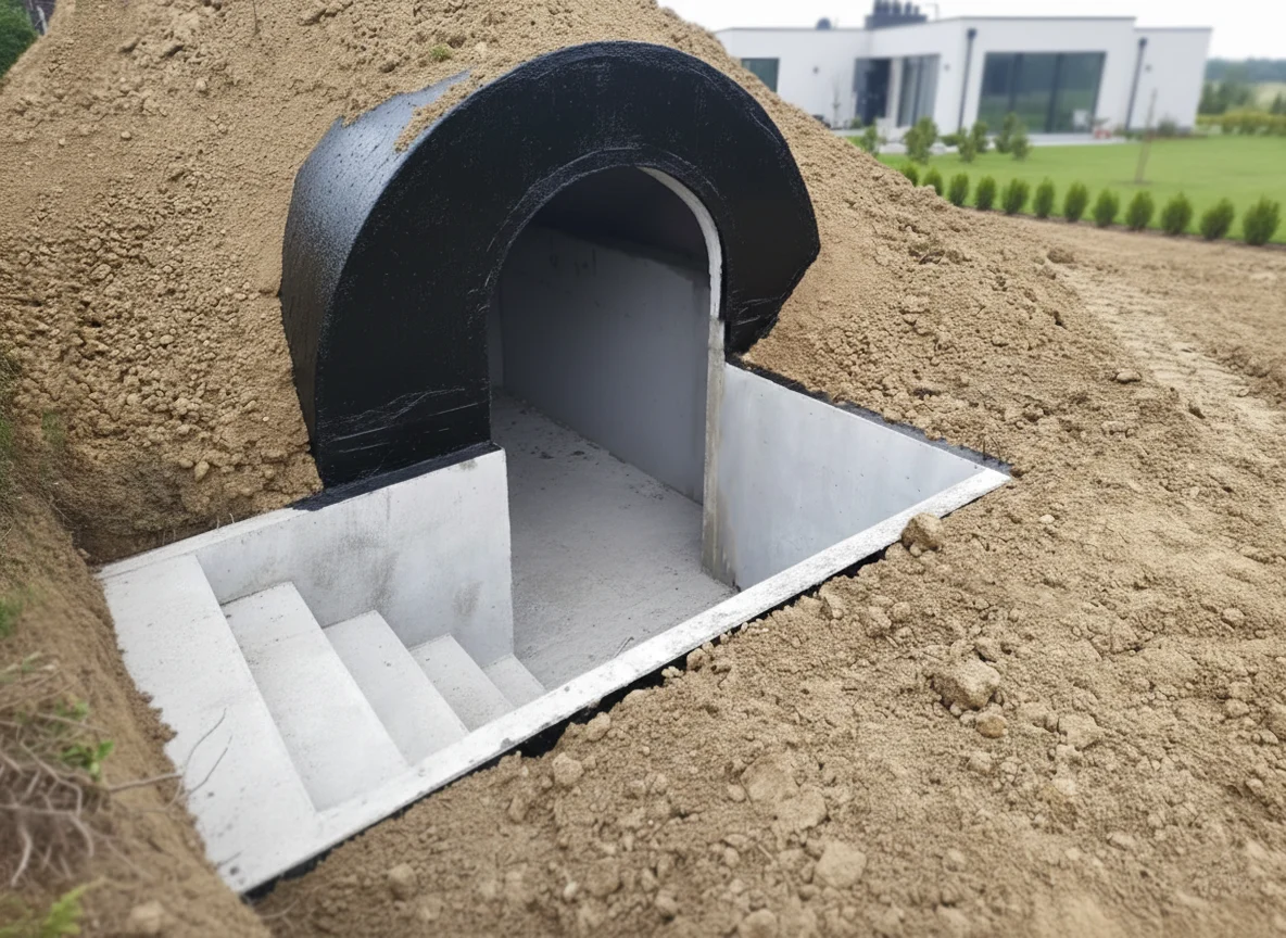 Integruoti betoniniai laiptai užtikrina patogų patekimą į rūsį visais metų laikais. Įgilinimas į gruntą leidžia išnaudoti natūralias žemės izoliacines savybes, todėl rūsio viduje visus metus palaikoma stabili 4 – 8 °C temperatūra ir tinkamas drėgmės lygis – be elektros ar papildomų įrenginių.